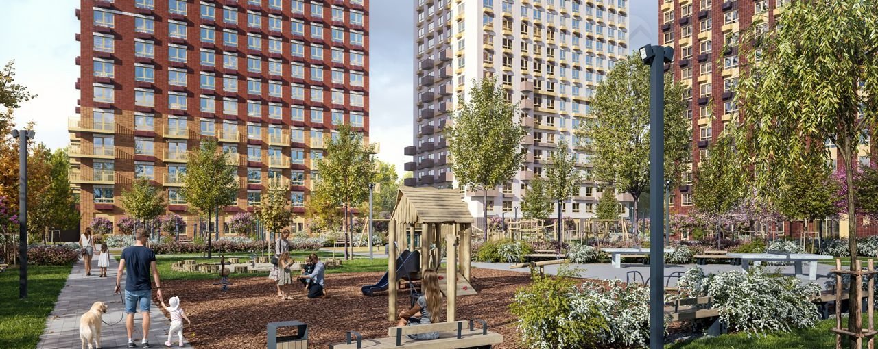 В жилой квартал входят одиннадцать корпусов, в которых есть квартиры и апартаменты. Переменная высота домов — от 11 до 24 этажей — создаёт ощущение простора и позволяет солнечному свету свободно проникать во дворы и комнаты. Фасады природных цветов украшены разными фактурными элементами, поэтому каждый дом выглядит по-особенному.