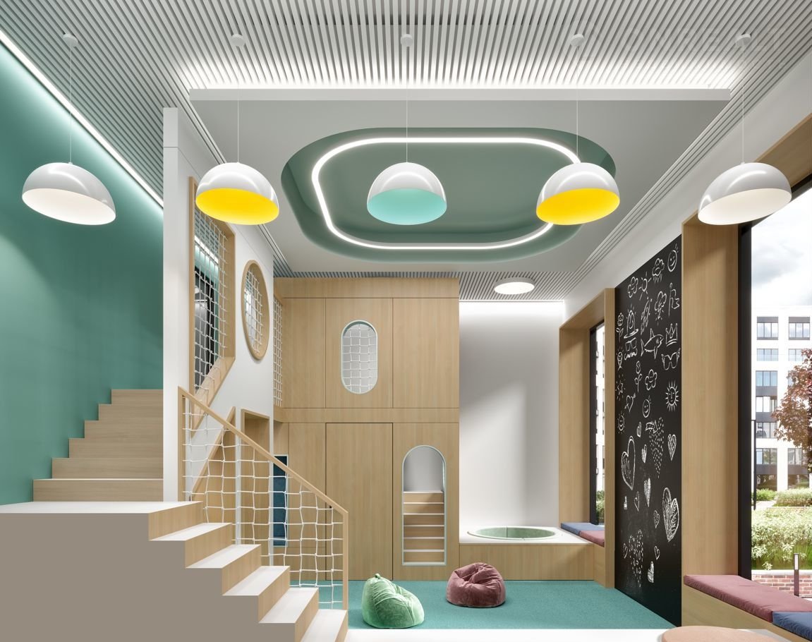 Игровая комната, расположенная в центральном лобби, оборудована двухэтажным комплексом, мягкими татами, книжками и играми, способными увлечь ребятню