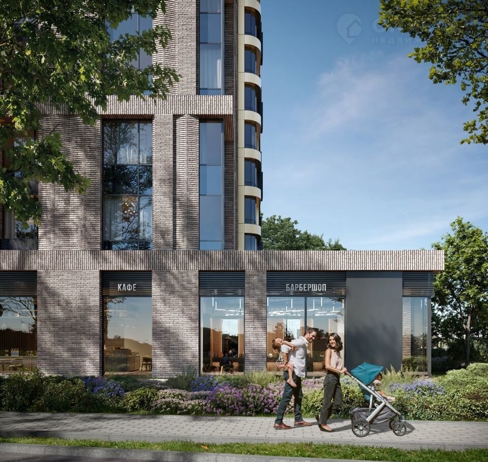 Внутренний двор 1,5 га – функциональное и безопасное пространство для игр, работы и занятий спортом. Пешеходный променад для прогулок. Дома переменной этажности. Есть подземный паркинг.