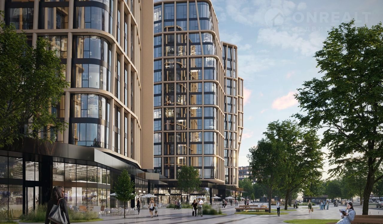 Внутренний двор 1,5 га функциональное и безопасное пространство для игр, работы и занятий спортом. Пешеходный променад для прогулок. Дома переменной этажности. Есть подземный паркинг.