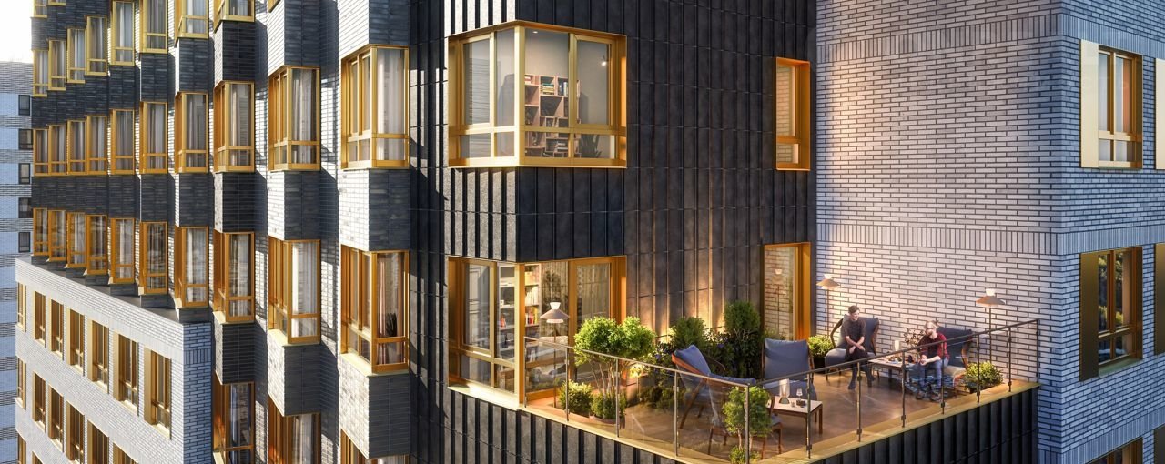 Ключевая особенность новых корпусов проекта — это особый архитектурный образ, разработанный бюро М.А.М. Здания привлекают внимание контрастом светлых фасадных поверхностей с тёмными, более детализированными элементами. Архитектурные приёмы формируют связь с городским контекстом: низкоэтажные корпуса естественно вписываются в окружающий ландшафт, в то время как 32-этажная башня добавляет вертикальный акцент, усиливающий общий облик квартала. В «Кронштадтском 9» можно выбрать квартиру с угловыми окнами: они визуально расширят комнату и сделают пространство легче и светлее. В каждом новом корпусе будут террасы: с одной из них, расположенной в башне-доминанте, будет открываться ошеломляющий вид на реку Химку. А в 12-этажных корпусах будут балконы — обычные открытые и французские.