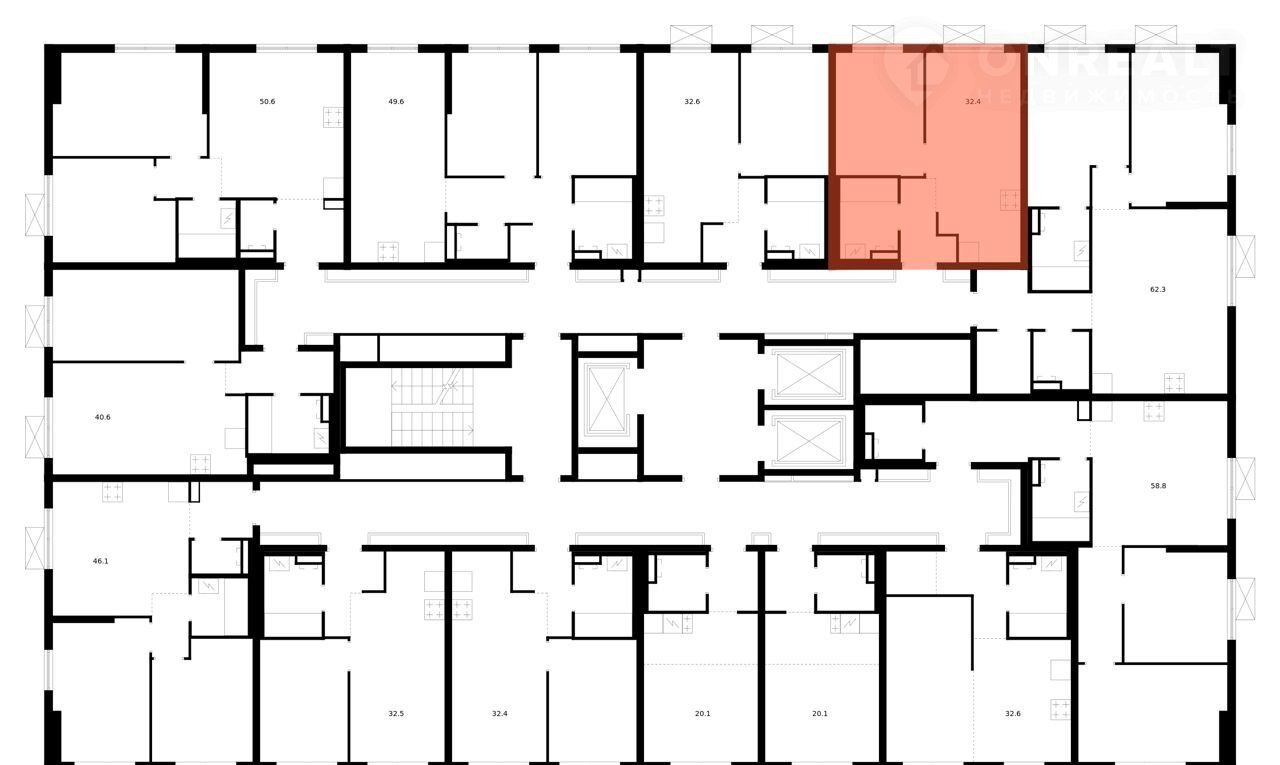 Общая площадь 32.4 м2