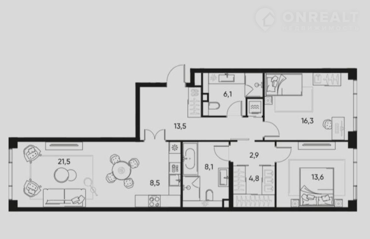 • Кoличество комнат: 3
