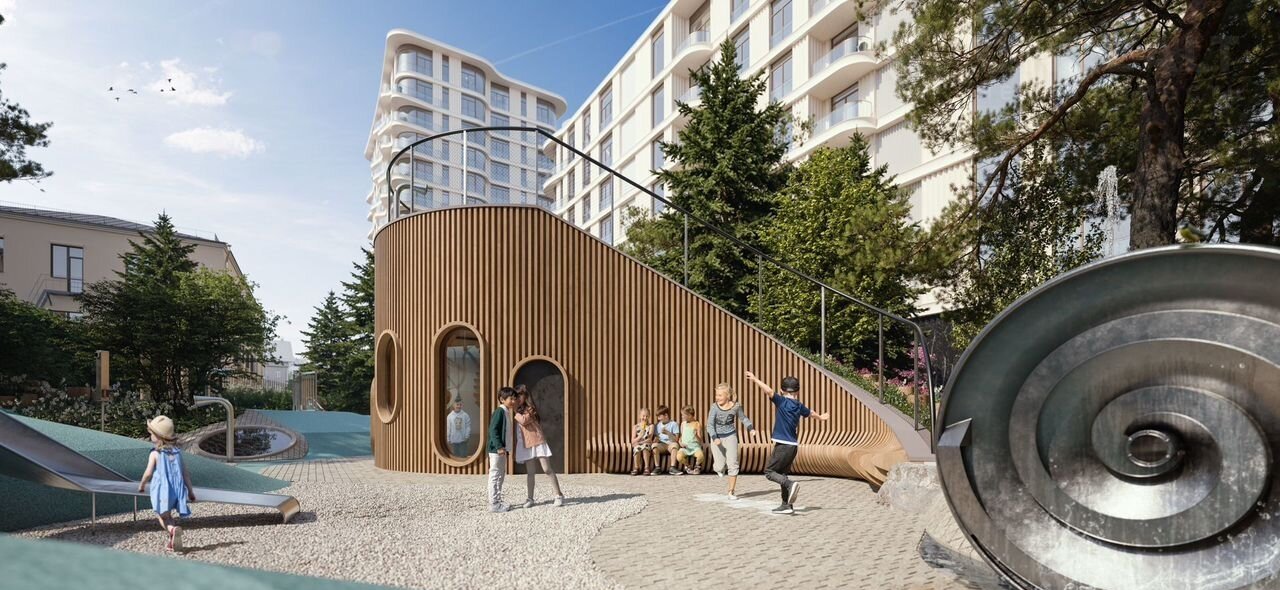 На закрытой территории находится самый большой на элитном рынке двор-парк площадью 1,4 га с фонтаном, ручьём, зонами для воркаута и тихого отдыха. КIDS LАВ: развивающая детская площадка на улице и игровая комната в помещении. FIТ LАВ: фитнес-клуб с 25-метровым бассейном, bеаuty rооm, доступные только для жителей.