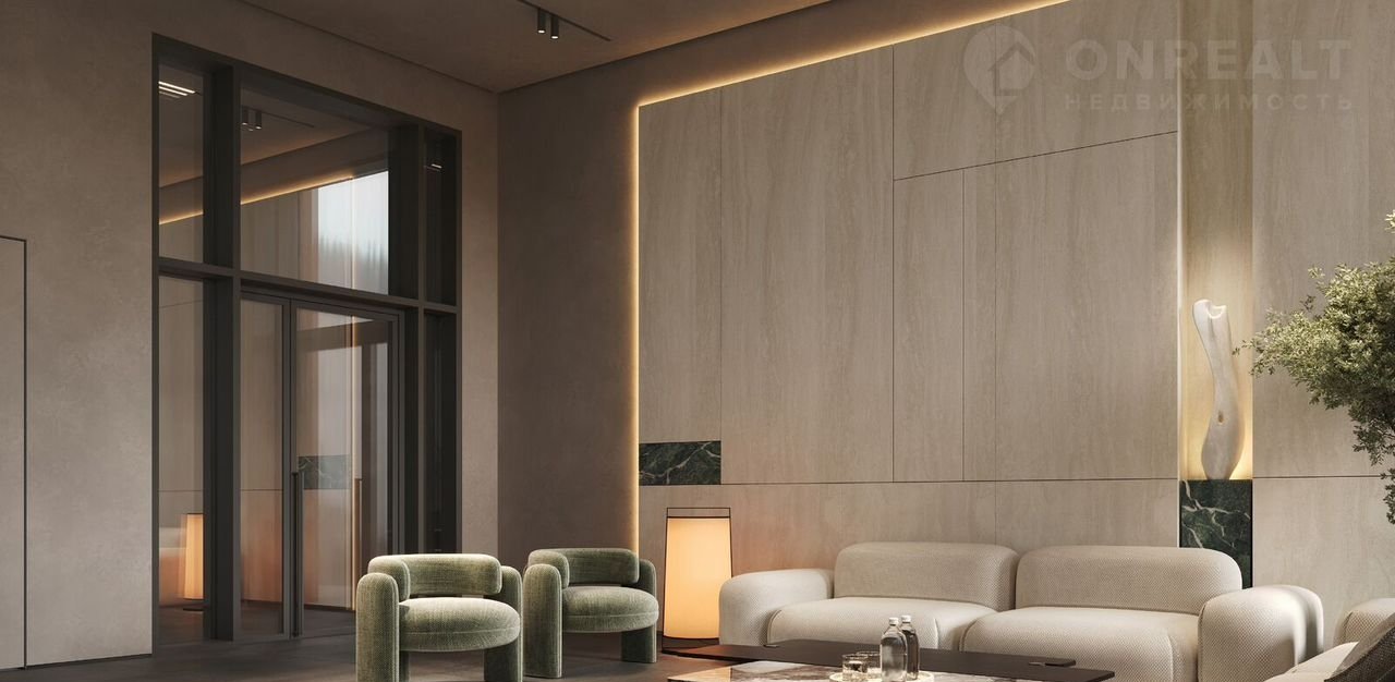 • дизайнерские лобби от бюро АВОVЕ АRСНIТЕСТURЕ с панорамными окнами, интерьерами в теплой цветовой гамме и мягкой зоной ожидания располагаются в каждой башне;