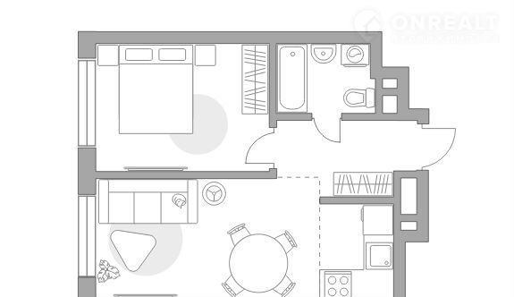 Жилая площадь 27.7 м2