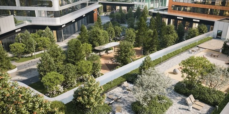 Главной артерией квартала станет собственный зеленый бульвар. Он начнется с площади у входа на территорию и, объединяя все внутренние пространства, пройдет через ключевые площади с арт-объектами, водными зонами и архитектурными формами.
