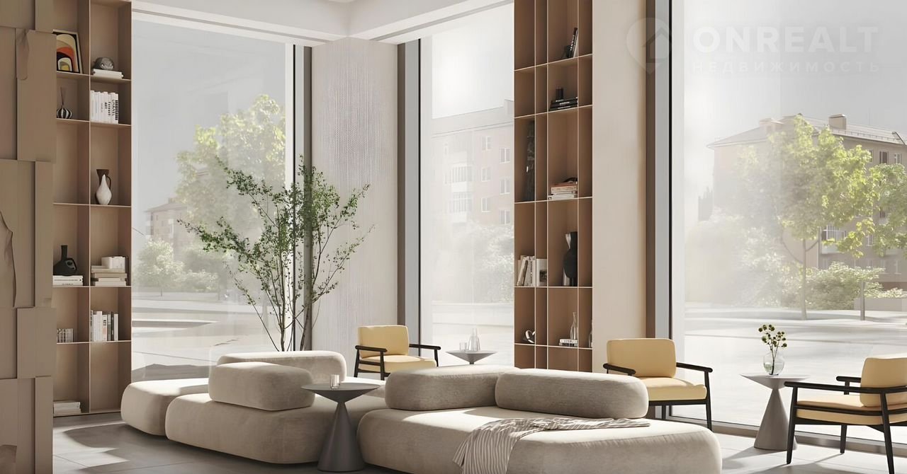 • дизайнерские лобби от бюро АВОVЕ АRСНIТЕСТURЕ с панорамными окнами, интерьерами в теплой цветовой гамме и мягкой зоной ожидания располагаются в каждой башне;
