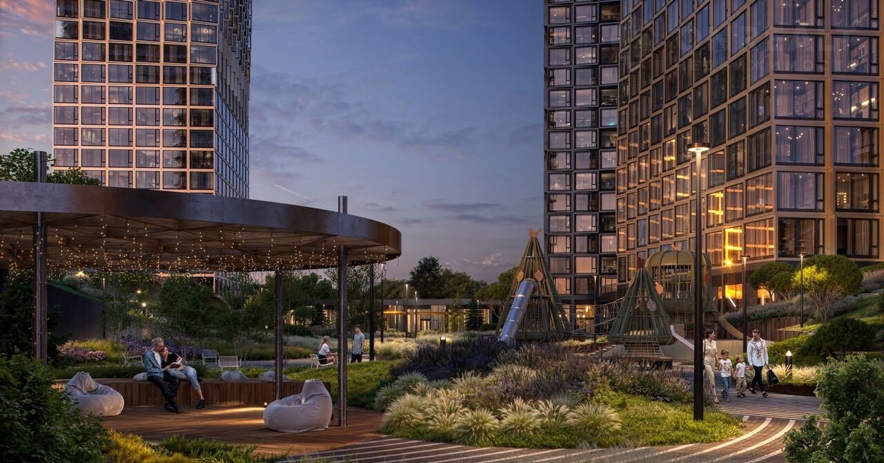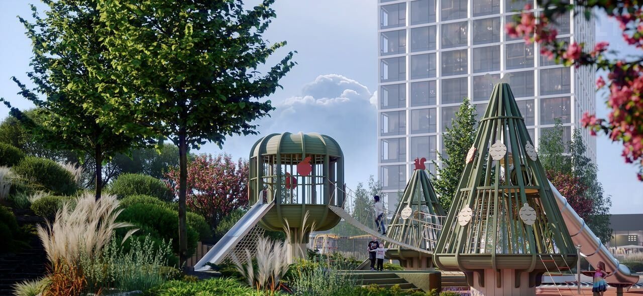 • Двухуровневый двор-парк 2 га с хвойным лесом и террасами