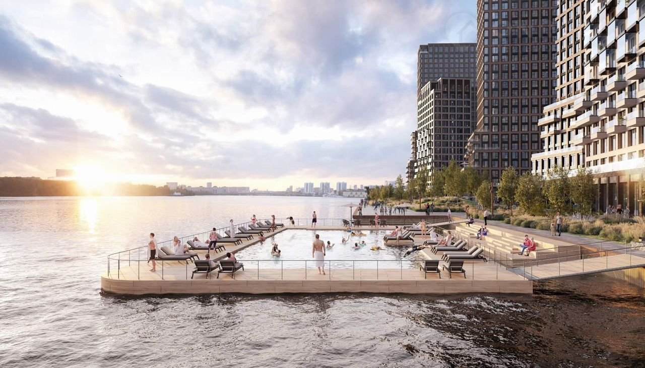 • Собственная набережная длиной 412 м., которая после завершения строительства сомкнется с эко-парком Печатники.