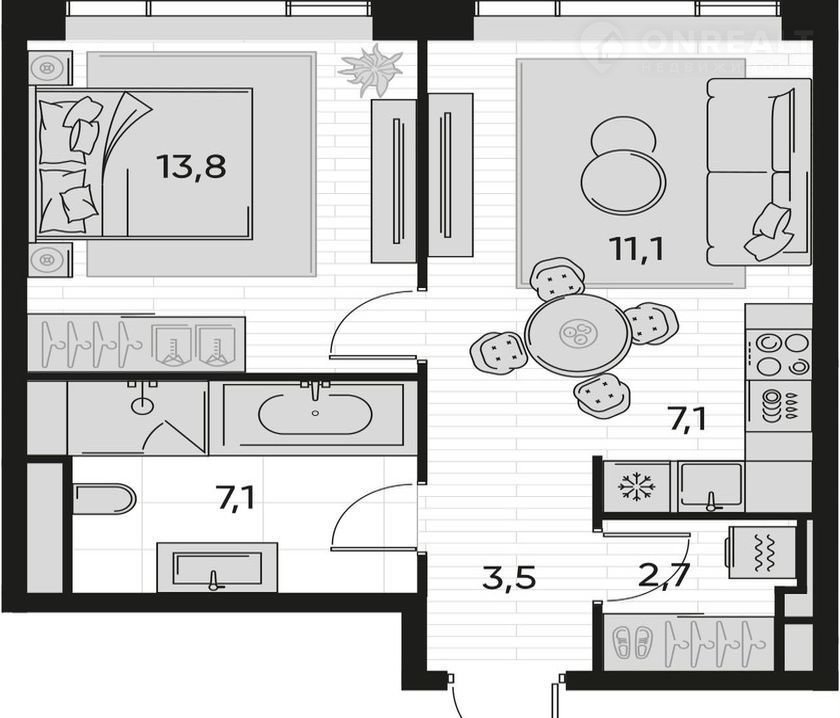Площадь кухни 7.1 м2