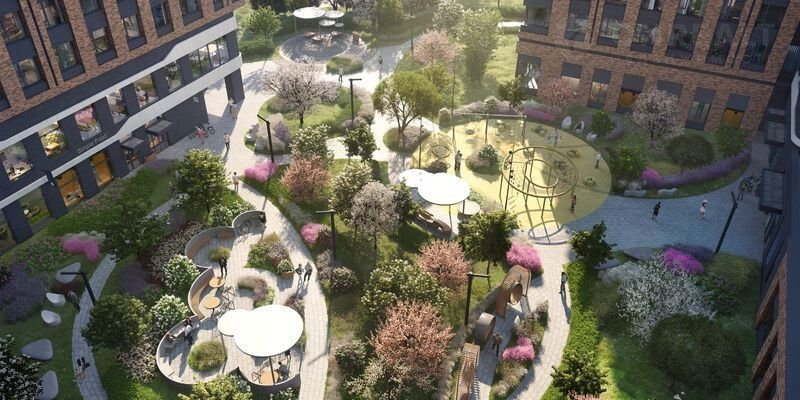 • Закрытые безопасные зелёные дворы-парки без машин!