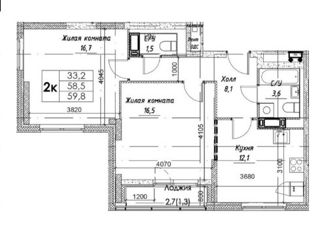 2-ком. квартира на продажу, 54.2 м2, проспект Маршала Жукова
