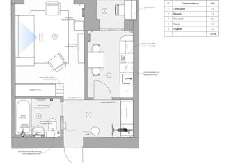 Общая площадь: 34 м2