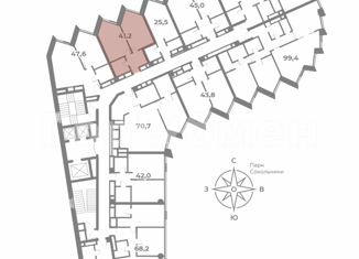 Однокомнатная квартира на продажу, 41.2 м2, улица Сокольнический Вал, 3