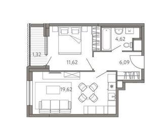 Общая площадь: 42.6 м2