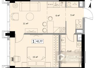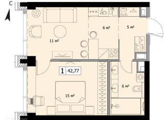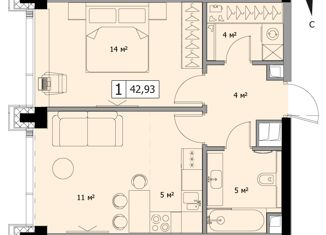 Продается однокомнатная квартира, 42.93 м2
