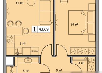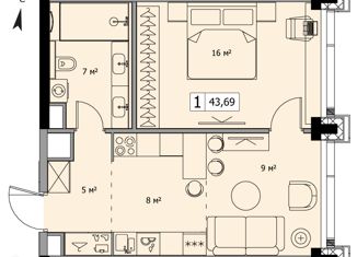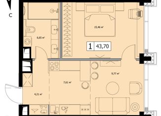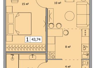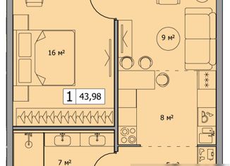 Продажа однокомнатной квартиры, 43.7 м2