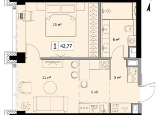 Продается 1-ком. квартира, 42.96 м2
