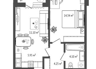 Продажа 1-ком. квартиры, 39.9 м2, Электролитный проезд, 7
