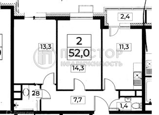 Общая площадь: 52.4 м2