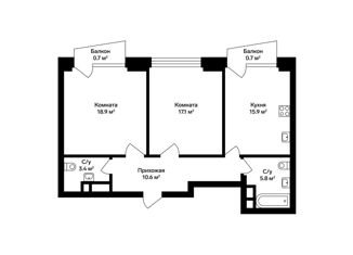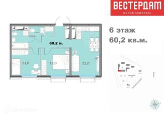 Двухкомнатная квартира на продажу, 56.8 м2, Аминьевское шоссе, 4Дк3литВ