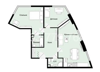 Общая площадь: 77 м2