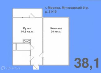Продам однокомнатную квартиру, 38.4 м2, Мячковский бульвар, 31/19