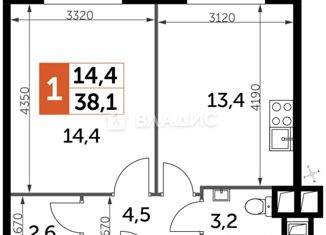 Общая площадь: 38.1 м2