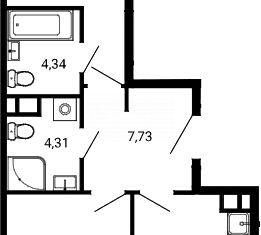 Общая площадь: 44.3 м2
