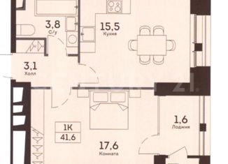 Общая площадь: 40.9 м2