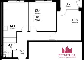 Продажа 2-ком. квартиры, 53.4 м2, проспект Лихачёва, 16к4