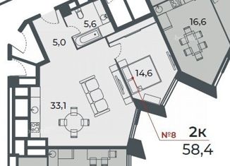 Двухкомнатная квартира на продажу, 58.5 м2, улица Сокольнический Вал, 3