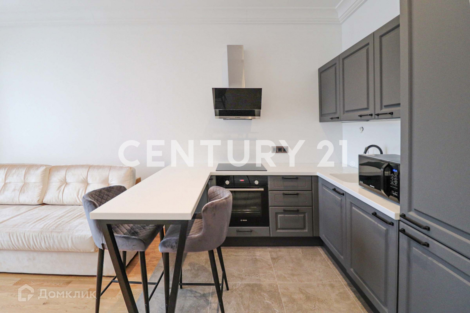 Теплые полы, сантехника villeroy boch, датчики протечки воды. На кухне столешница из керамогранита, техника Bosch, установлены фильтры для воды. Мебель Аscona.
