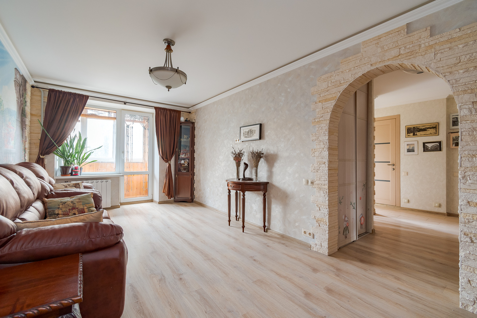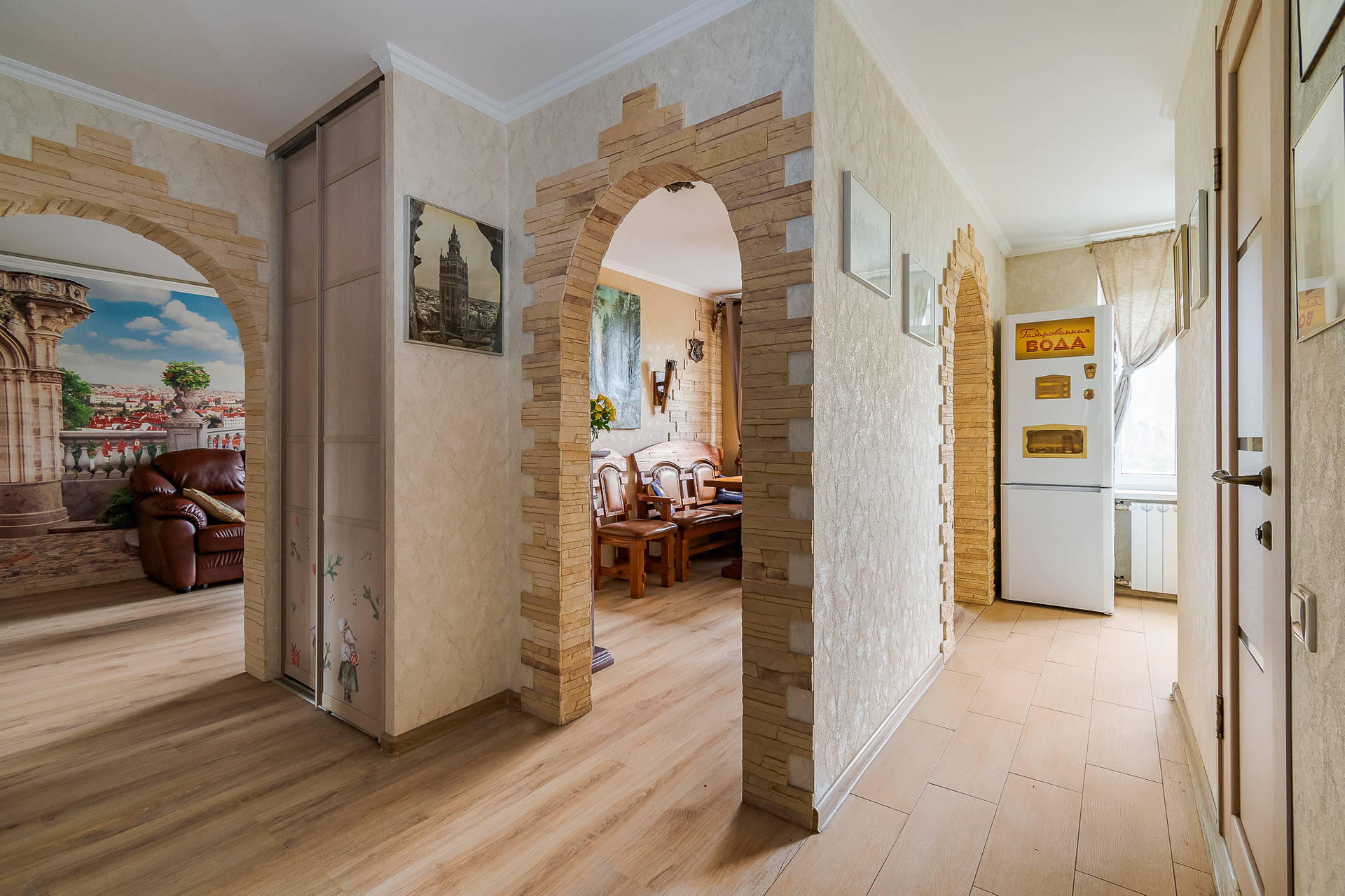 В маленькой комнате, благодаря арке, расположена обеденная зона, соединенная с кухней. В прихожей два вместительных шкафа для хранения вещей. В квартире есть все необходимое как для проживания так и для арендного бизнеса.
