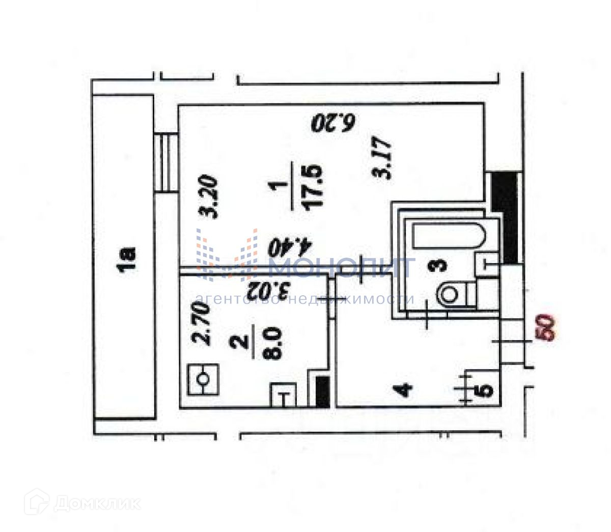 Жилая площадь 17.5 м2