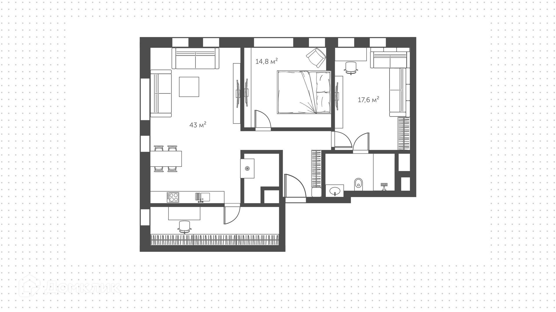 Жилая площадь 63 м2