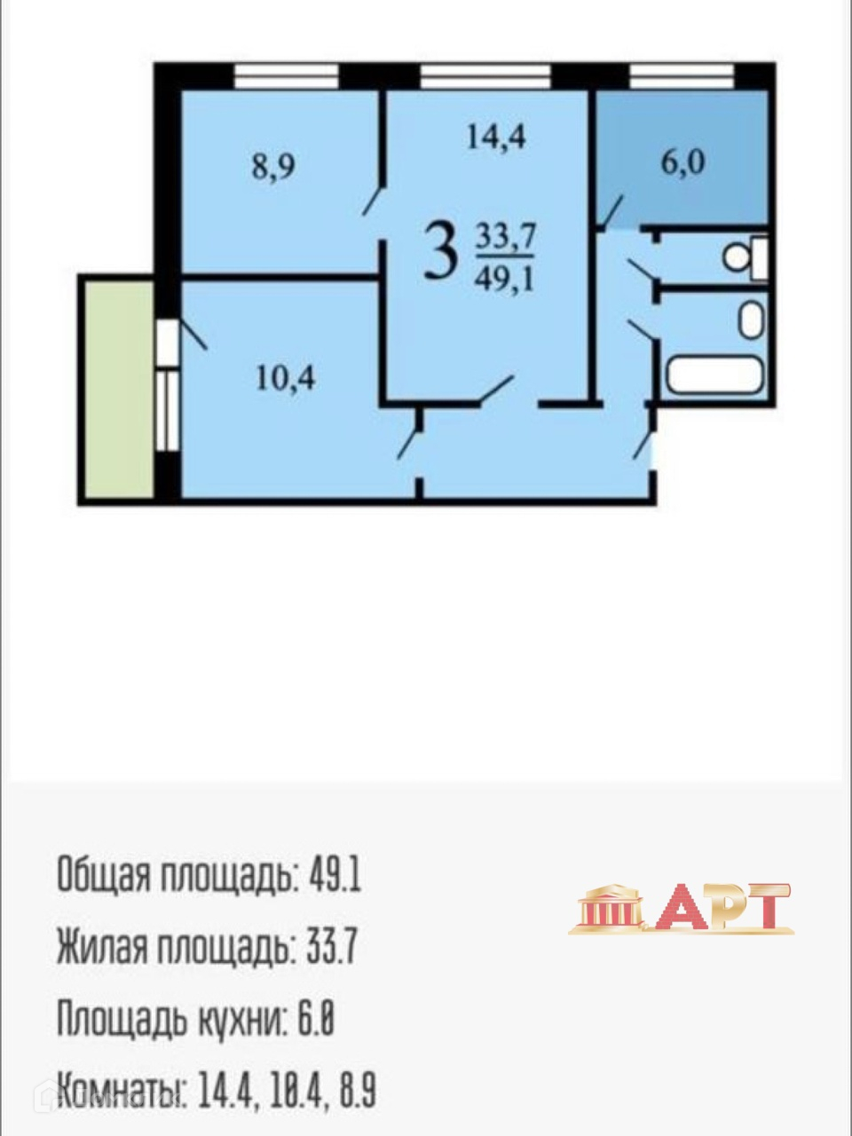 Общая площадь 49 м2