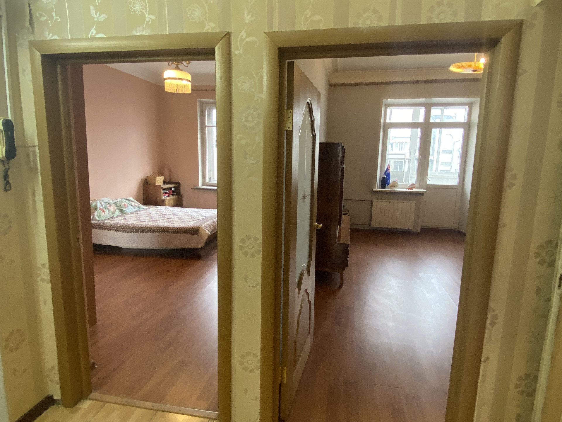 Квартира расположена на 7 этаже кирпичного дома. На каждом этаже всего по две квартиры. Чистый подъезд без посторонних запахов. Новый лифт. Территория дома огорожена, въезд машин на парковку через ворота.
