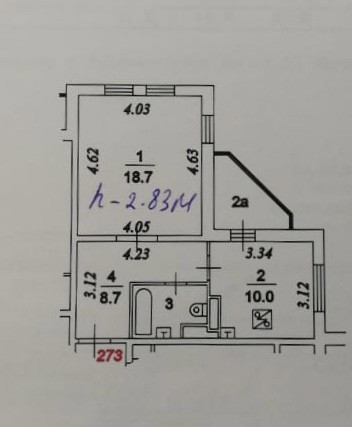 Высота потолков 2.83 м