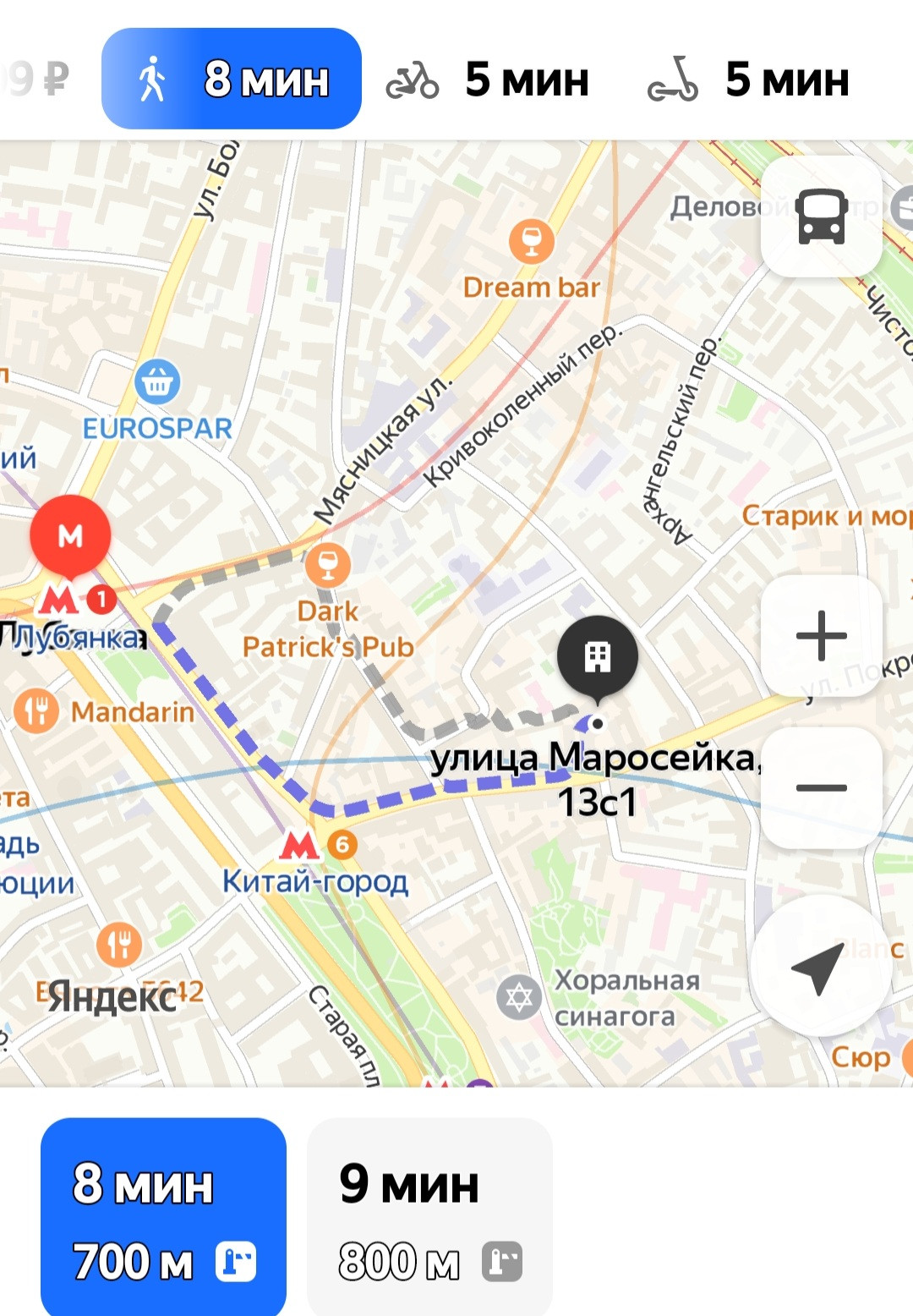 -метро Лубянка 8 минут пешком-