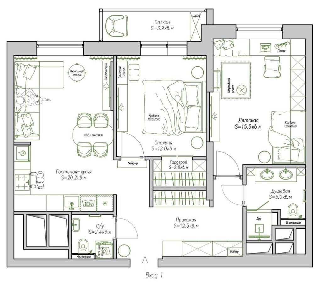 Общая площадь 75 м2
