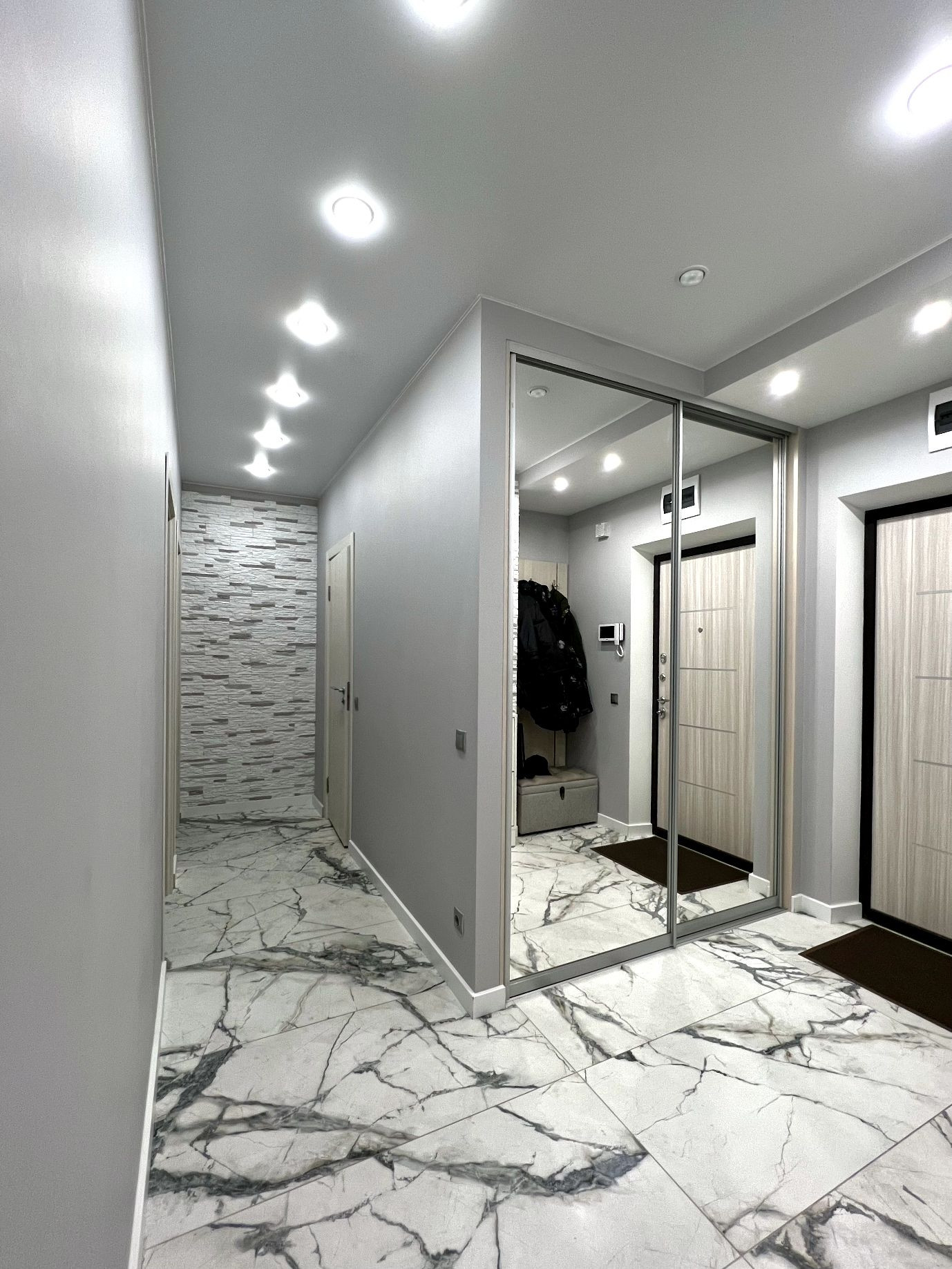 Здесь продуманы до мелочей места хранения, розетки, многоуровневое освещение. В каждой комнате есть интернет розетки. На полу и в ванной итальянский керамогранит и тёплые полы. Заменена полностью сантехника, а значит можно не переживать за возможные косяки застройщика. Установлена надежная входная дверь и дополнительный видеодомофон. Заменена проводка и продуманы розетки с выключателями. Вам не придётся вкладываться, чтобы устранять или улучшать то, что предлагает застройщик.