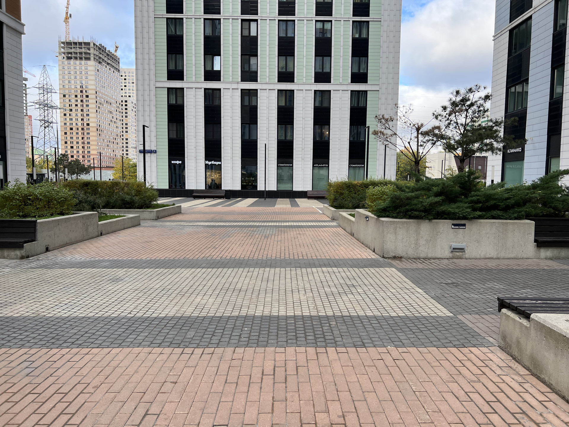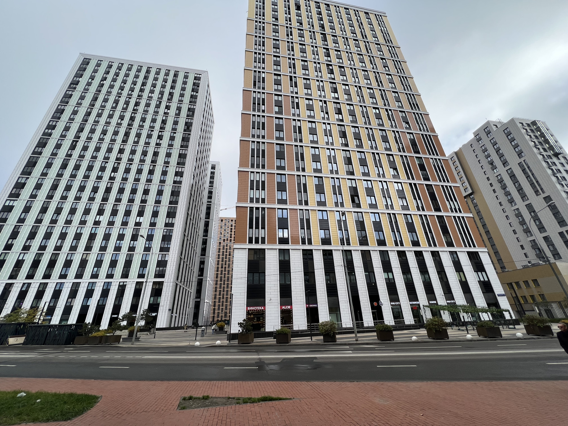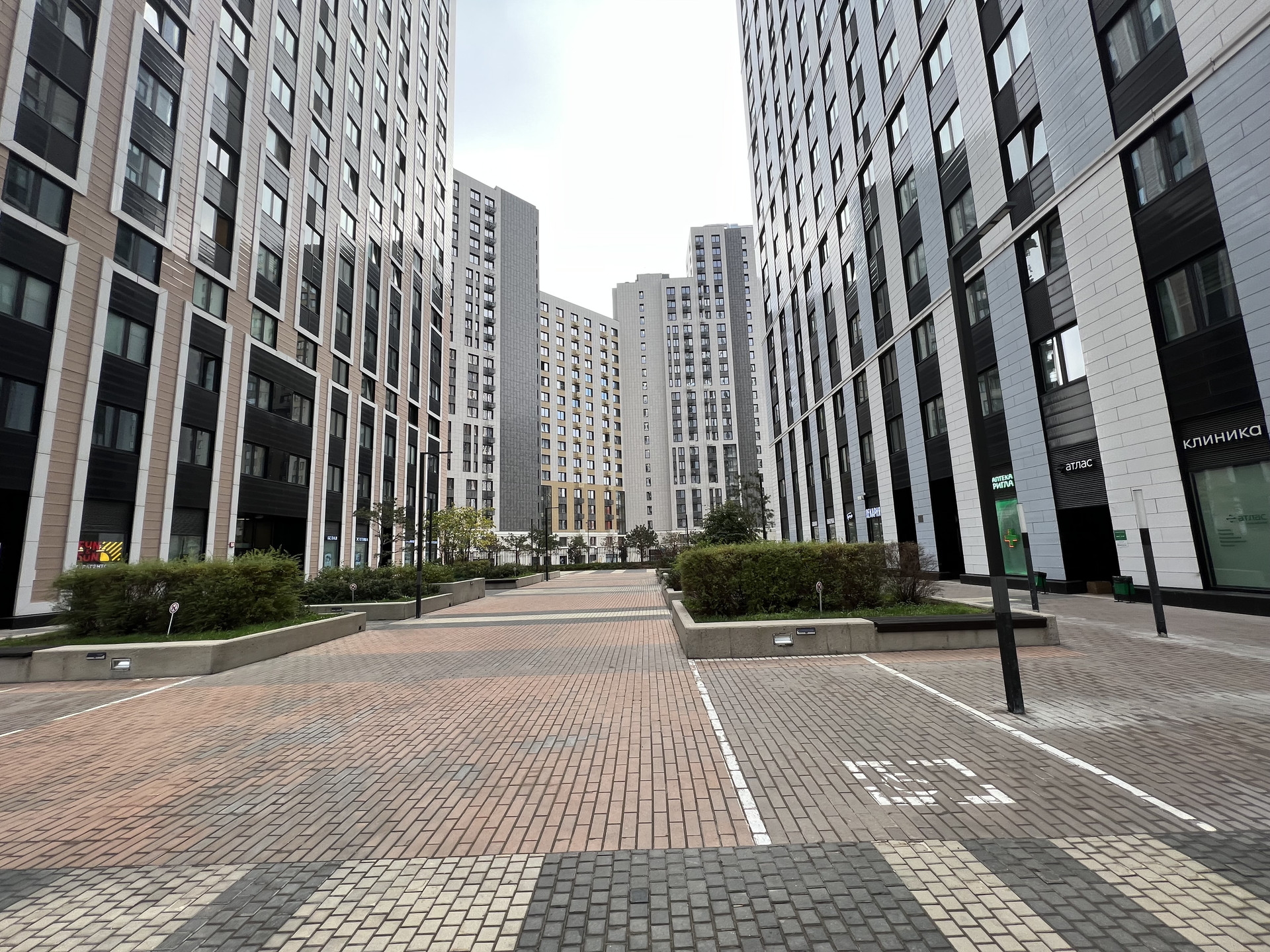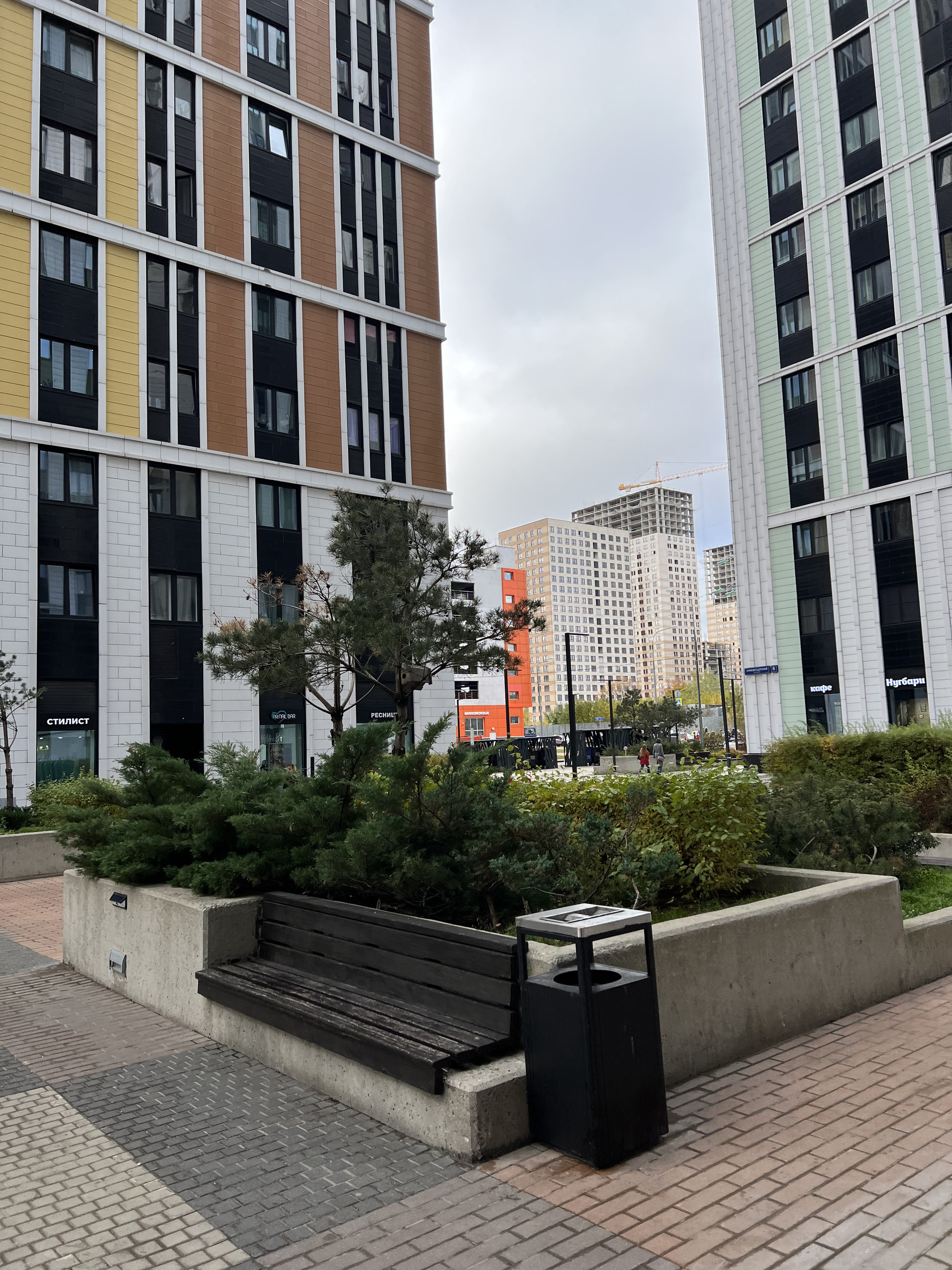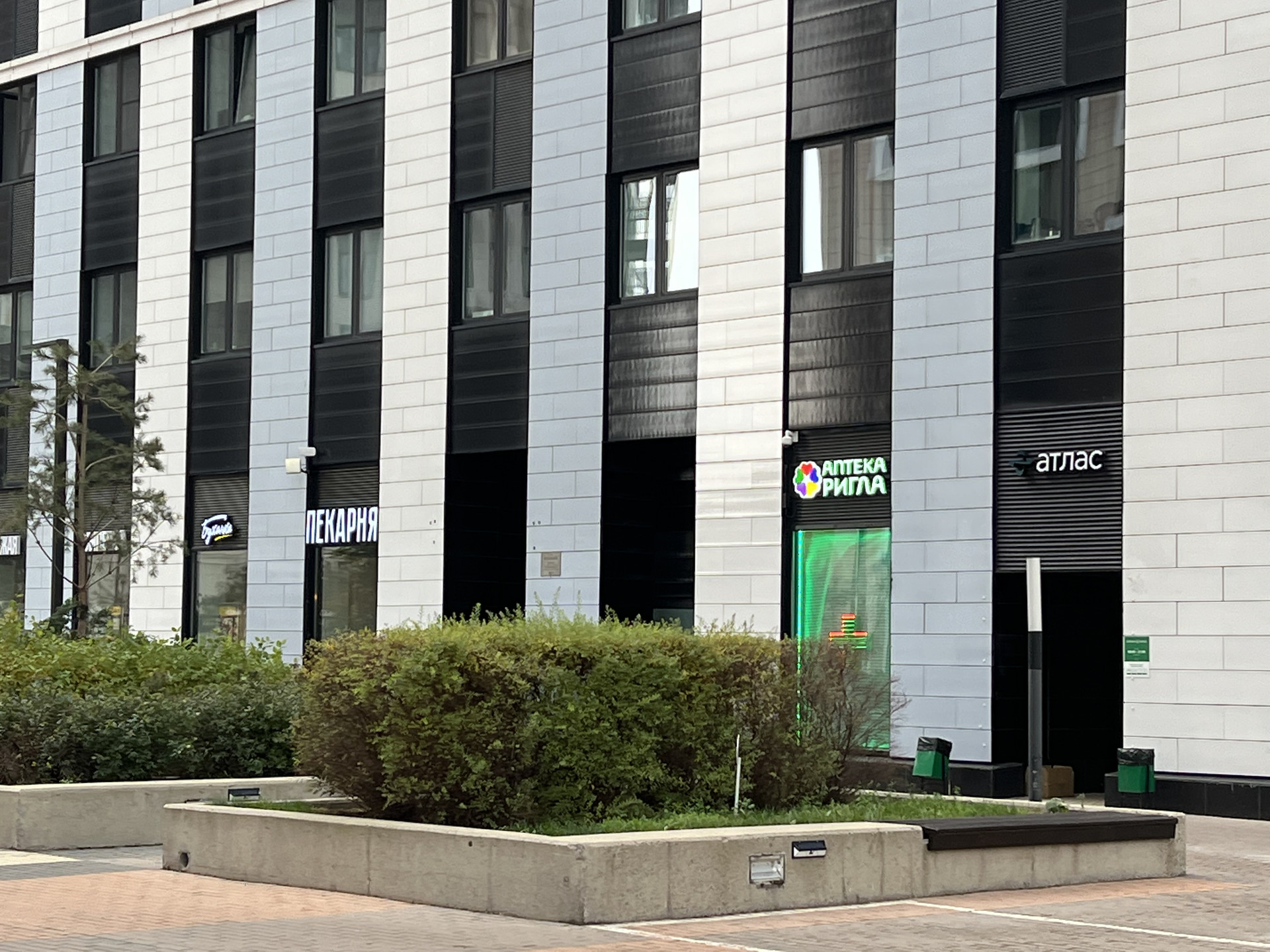Все первые этажи в комплексе заполнили рестораны, кафе, аптеки, стоматологии и другие необходимые для жизни пространства.