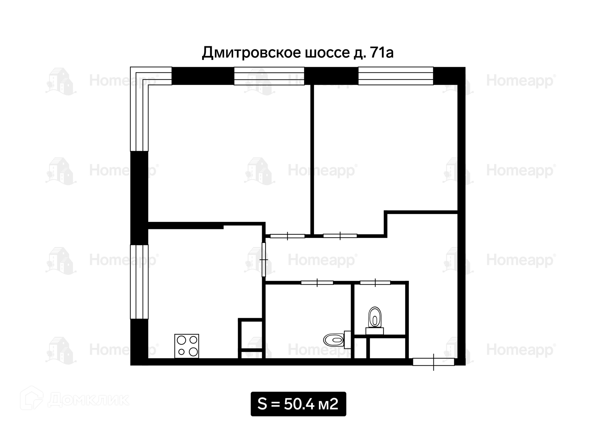 Общая площадь 50.4 м2