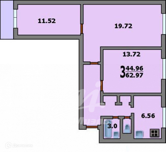 Общая площадь 63 м2