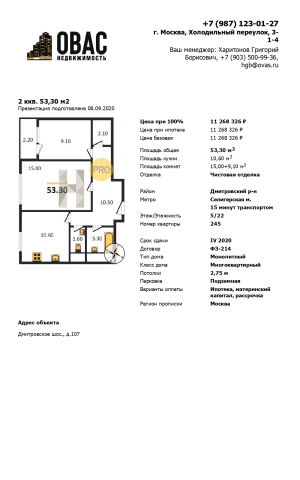 2-комнатная квартира, 53.3 м2, этаж 5 / 22, на продажу в Москве, Дмитровское шоссе, 107Ак5