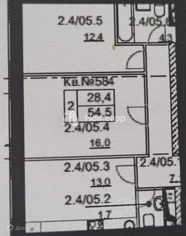 Общая площадь 54 м2