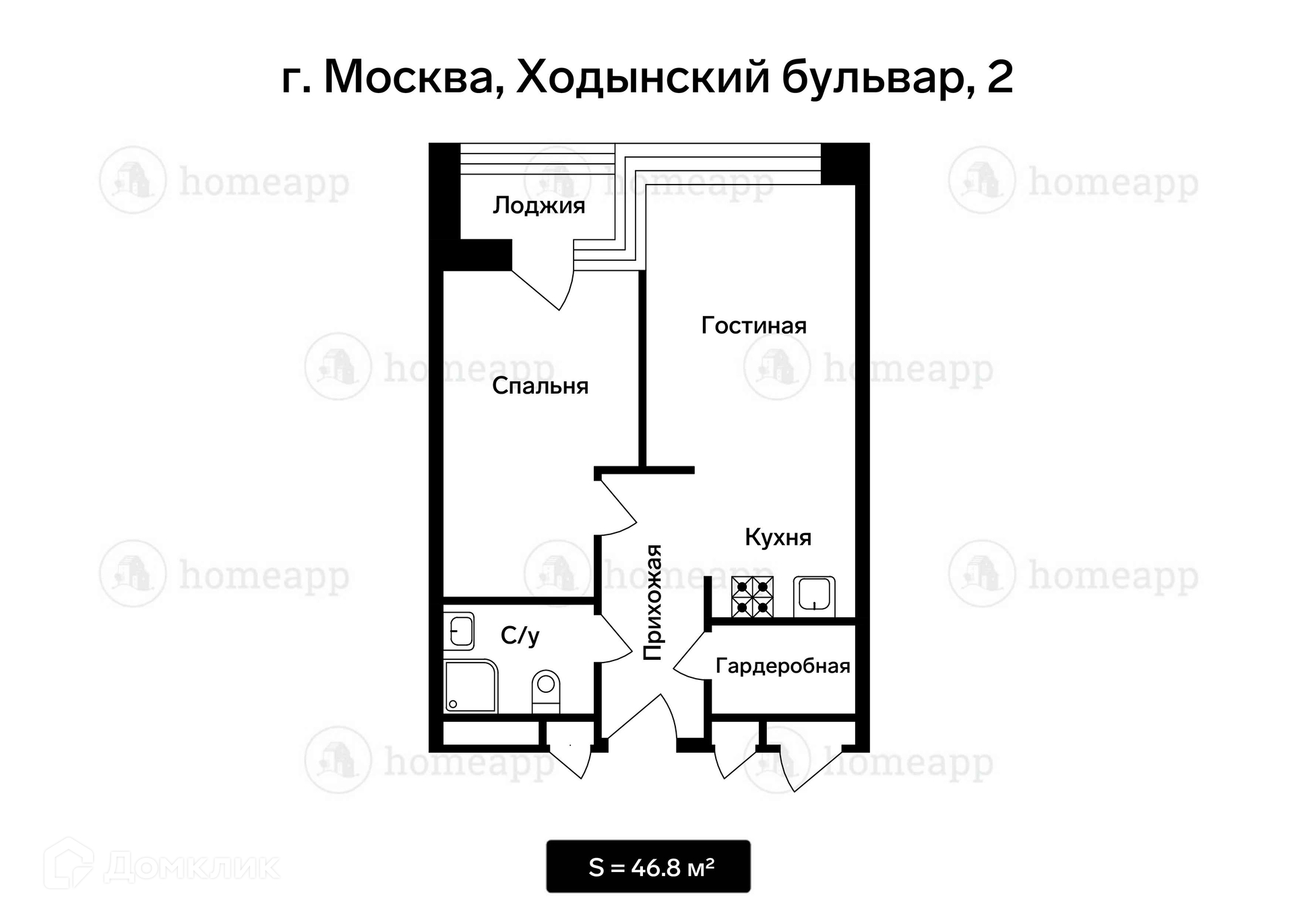 2-комнатная квартира, 47 м2, этаж 6 / 15, на продажу в Москве, Ходынский бульвар, 2