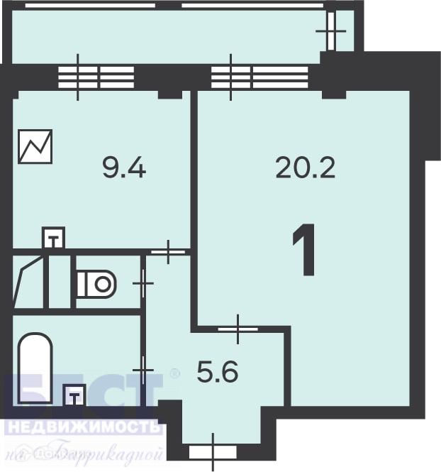 Жилая площадь 20.2 м2